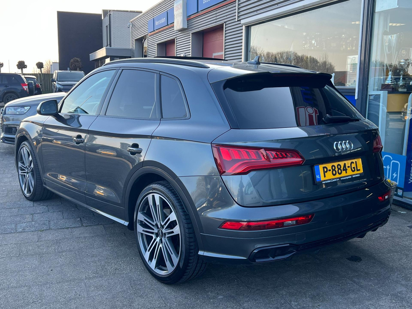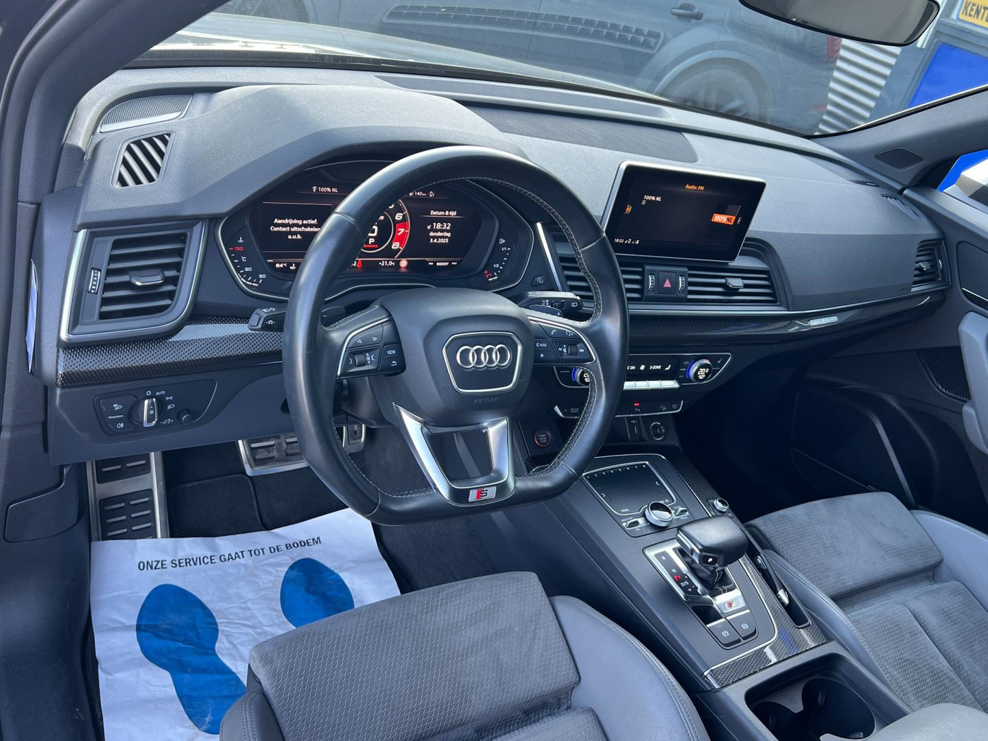 Zeer mooie en compete Audi 3.0 V6 SQ5 met mooie opties zoals een elektrisch schuif/kantel panoramadak, luchtvering, 21 inch licht metalen velgen, Stoel en achterbank verwarming, keyless entry, achterklep met servosluiting, inleg carbon, led koplampen enz enz..