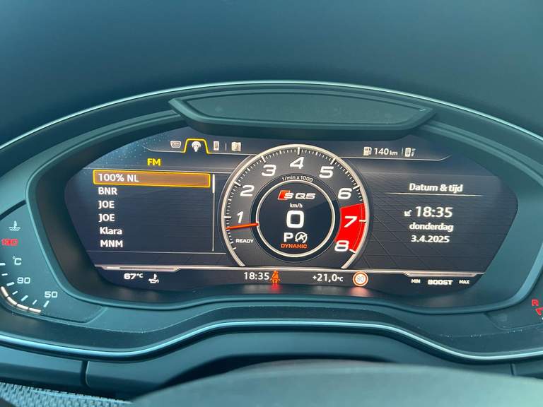 Een cockpit, een informatiecentrum... Wat is de cabine eigenlijk niet? Dankzij het digitale dashboard bent u van alles op de hoogte. De geluidskwaliteit aan boord is 'next level' dankzij het high performance audiosysteem. Prettig, altijd weten waar je moet zijn en hoe lang de rit nog duurt met het navigatiesysteem met harde schijf. De auto is ook uitgevoerd met automatische airconditioning. Harder en zachter met een druk op de knop: de audiobediening op het stuurwiel maakt het mogelijk. Ook is de Audi uitgerust met: sportstuur met schakelpaddels, parkeersensoren achter, regensensor, cruise control, keyless entry en automatisch dimmende buitenspiegels.